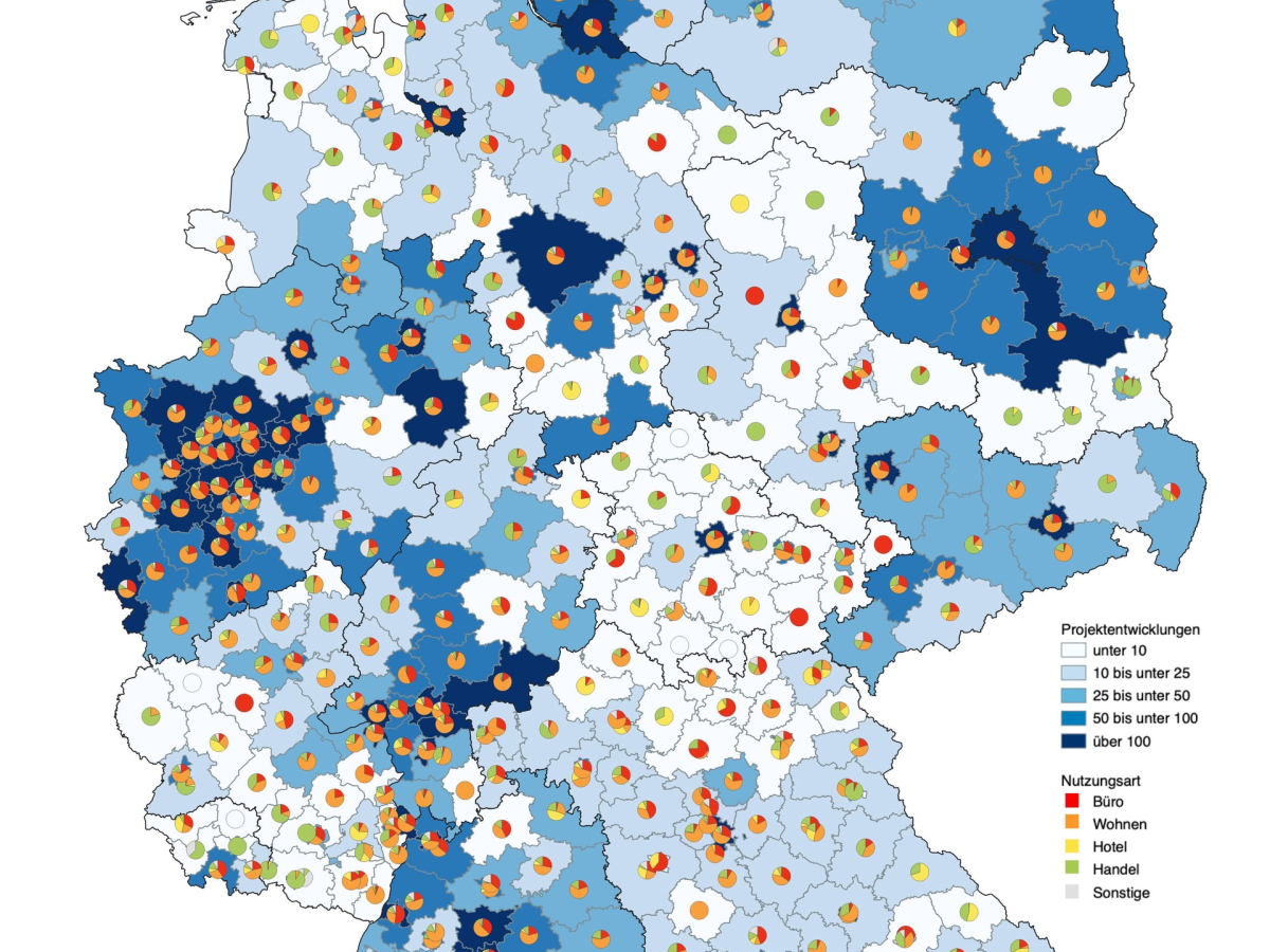 This is shown in a brief study based on the Development Monitor with data as at 31.12.2022. The Monitor enables numerous evaluations of the German institutional project development market by year, location and/or segment.