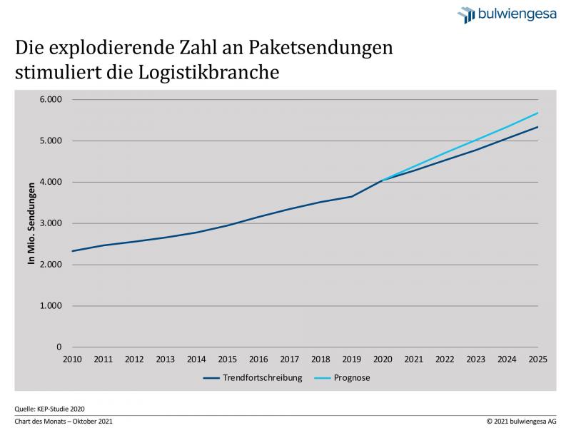 Ein Ende dieser Entwicklung ist längst nicht abzusehen. Bis 2025 ist laut BIEK mit einem jährlichen Wachstum des Sendungsvolumens von 7 % auf 5,68 Mrd. Sendungen zu rechnen. Damit öffnet sich die Schere zwischen der prognostizierten Entwicklung und dem langfristigen Trend – mit einem Sprung von insgesamt plus zehn Prozent im Vergleich zum Jahr 2019 verzeichnete das Sendungsvolumen jedoch weit mehr Anstieg, als bei einer bloßen Trendfortschreibung als wahrscheinlich gegolten hätte.