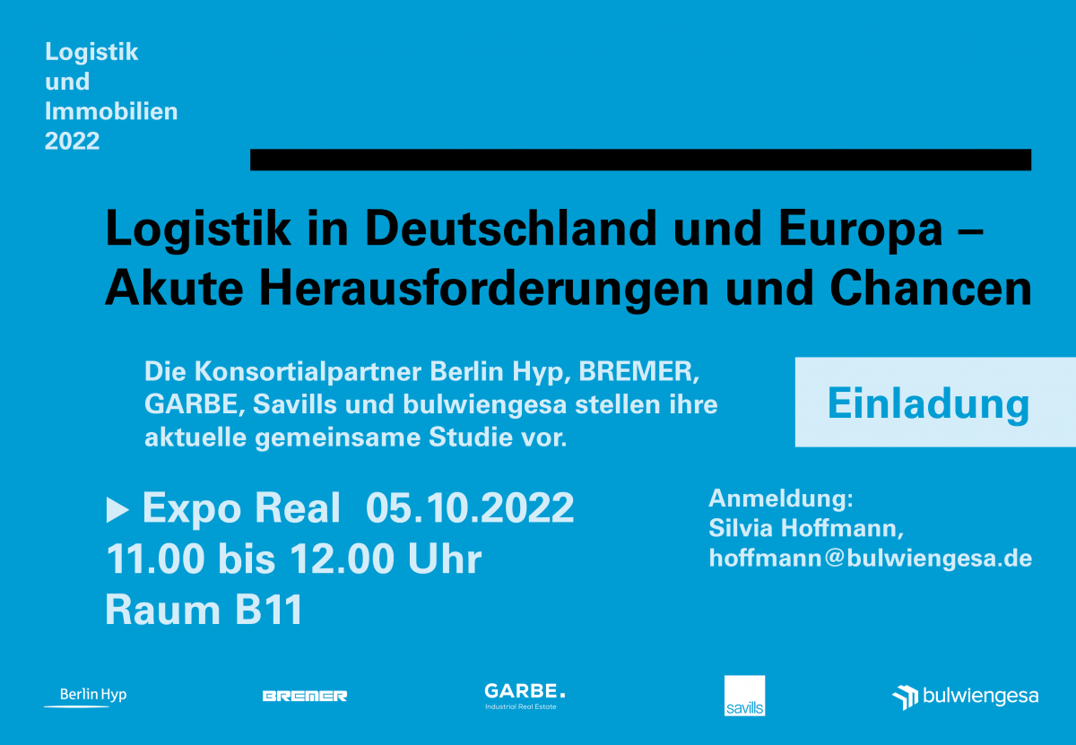 Es ist wieder soweit: Die Studie "Logistik und Immobilien" erscheint bereits zum achten Mal. Sie wird in bewährter Partnerschaft auf der Expo Real vorgestellt. Die Pressekonferenz ist offen für alle Interessierten