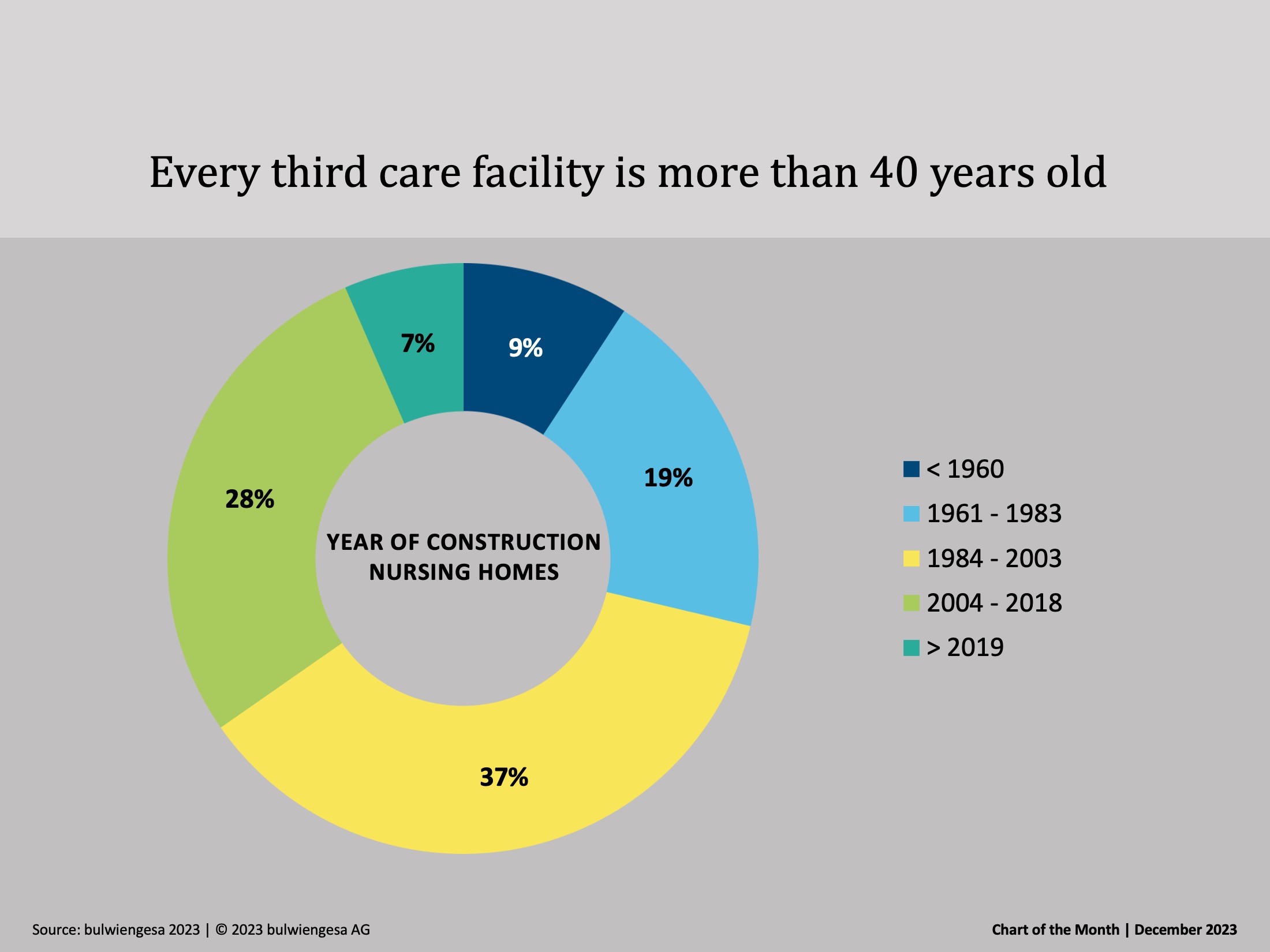 As a rule, existing facilities do not meet the necessary construction standards, whether in terms of the number of single rooms or, in particular, energy standards; this makes it difficult to find suitable investment products in the portfolio that meet investors' requirements. As a result, the opportunities for re-letting or reselling facilities with a service life of 40 years or more are becoming increasingly limited. Comprehensive refurbishment measures would be necessary, but these are often not carried out due to the cost intensity. This would result in considerable rent increases, which the operators would not be able to refinance. As a result, old care facilities are being closed. This in turn exacerbates the lack of sufficient care places.