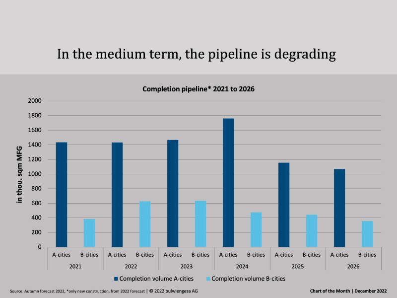 In the coming years, high volumes of newly completed offices will again come onto the market. Vacancy rates are rising, but not to a critical extent. Landlords and tenants can once again negotiate at eye level.